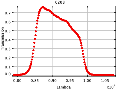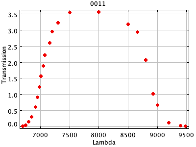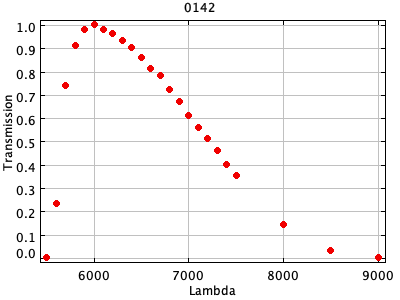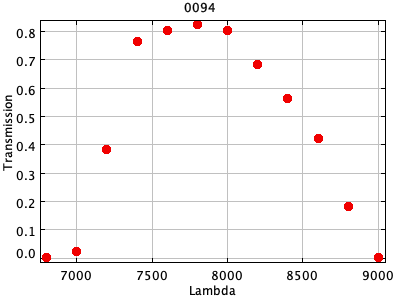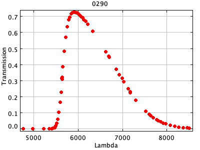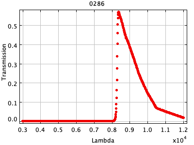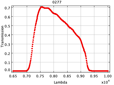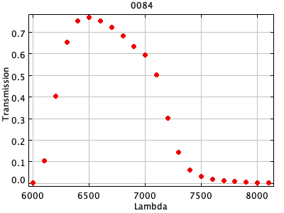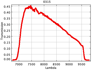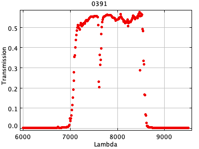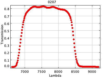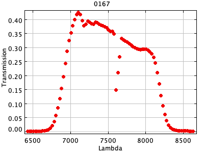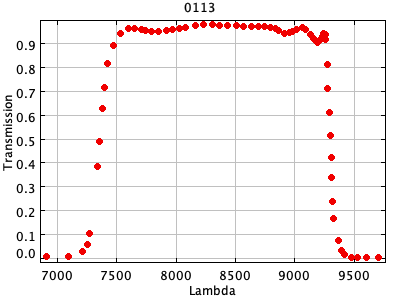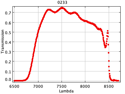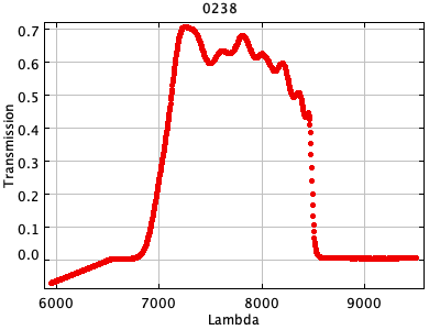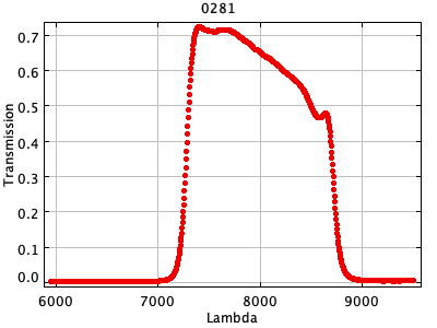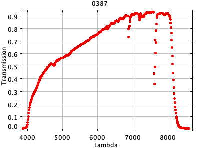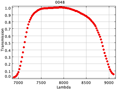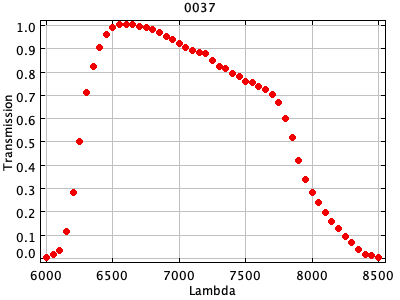 0054 ASCII / FITS / PLOT : Gunn z filter + four-shooter Ti CCD + Palomar 200" atmospher ( 81 lines )