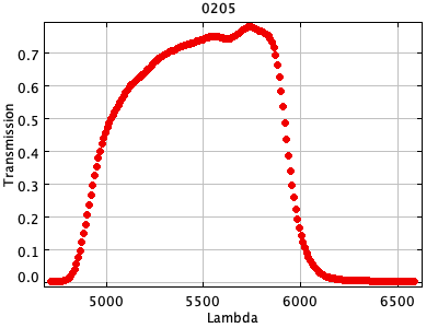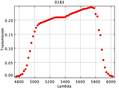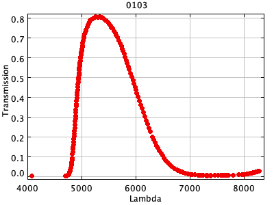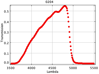 0049 ASCII / FITS / PLOT : C. MacKay and P. Hall KG3 filter (Cambridge) ( 189 lines )