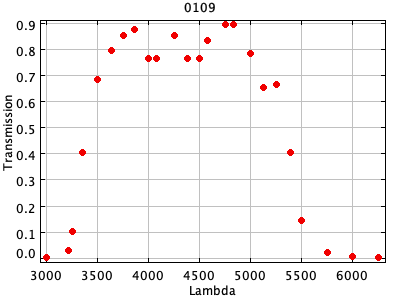 0061 ASCII / FITS / PLOT : A. Tyson J filter ( 40 lines )
