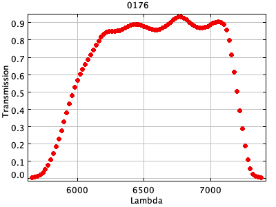 0053 ASCII / FITS / PLOT : Gunn i filter + four-shooter Ti CCD + Palomar 200" atmospher ( 75 lines )